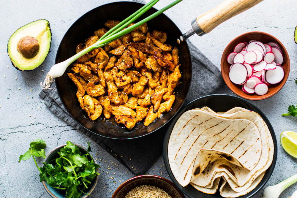 Gegrilltes Fleisch oder frisches Gemüse, serviert mit warmen Tortillas und hausgemachten Dips. Intensiv im Geschmack und perfekt zum Teilen.